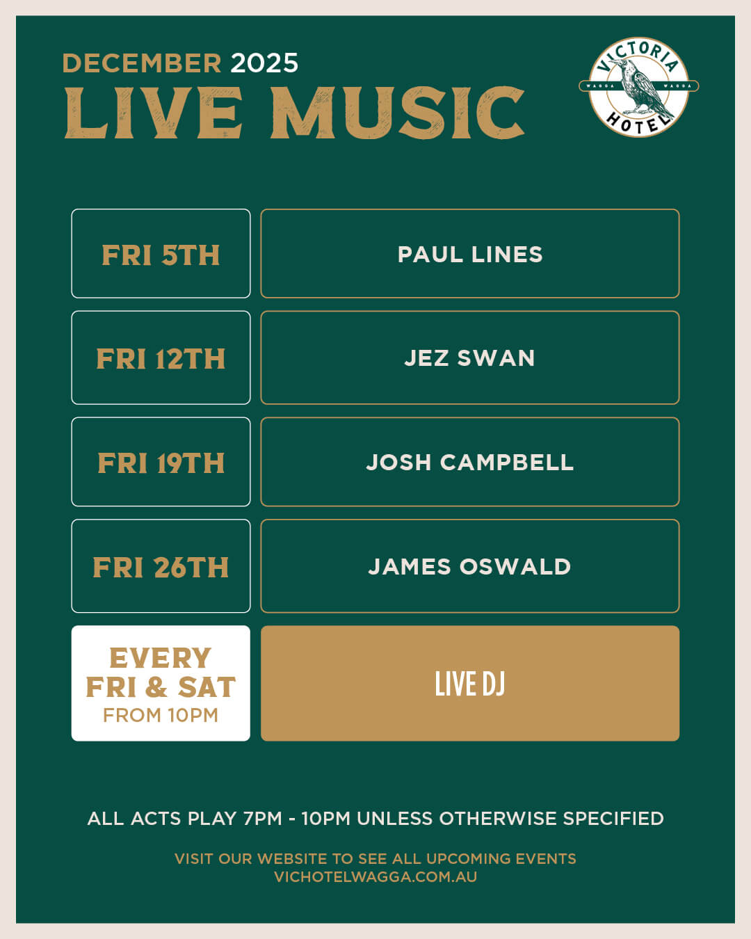 Join us for an unforgettable night of live music at Victoria Hotel! Enjoy the perfect blend of great tunes, good vibes, and fantastic company. Whether you’re here to relax or dance the night away, our live performances will make your night one to remember.